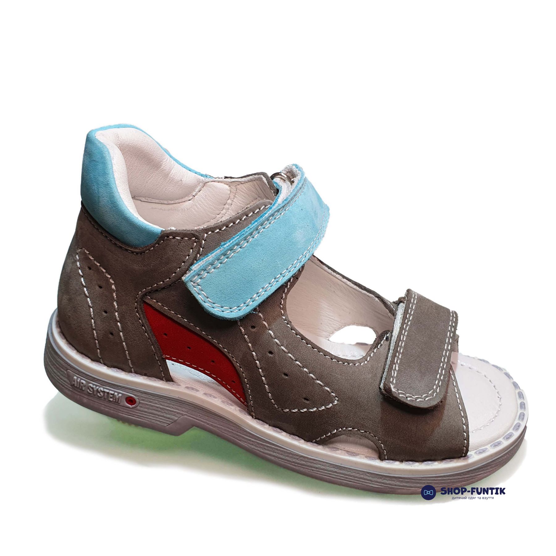 Сандалии детские для мальчиков Tunel серые с красными и голубыми вставками - это стильная и комфортная модель обуви для летнего сезона. Эти сандалии подходят для детей от 2 до 4 лет и доступны в размерах 22, 23,24,25 и 26. Изготовлены они в Турции, из натуральной кожи с ну буковой отделкой верха, которая придает им эффектный внешний вид.