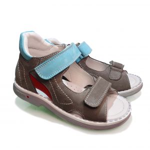 Детские сандалии в сером цвете, который гармонично сочетается с красными и голубыми вставками. Застежка на липучках обеспечивает простоту в использовании и позволяет быстро и легко регулировать размер.