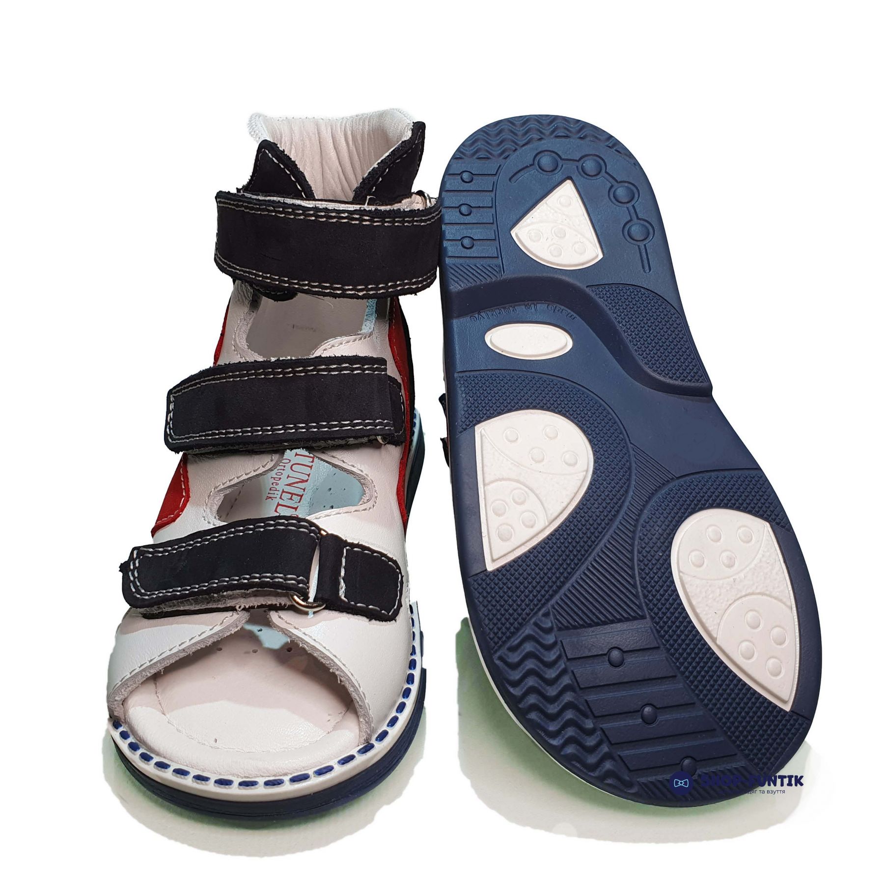 Сандалии Tunel темно-синие с красно-белыми вставками высокие 125-5-1