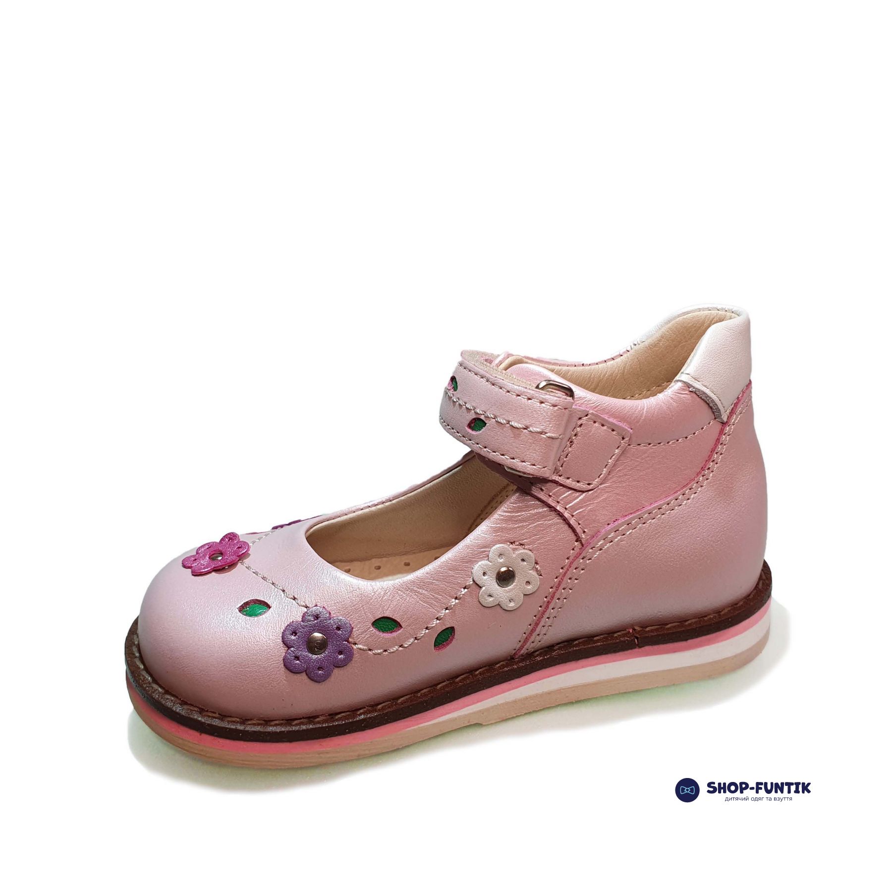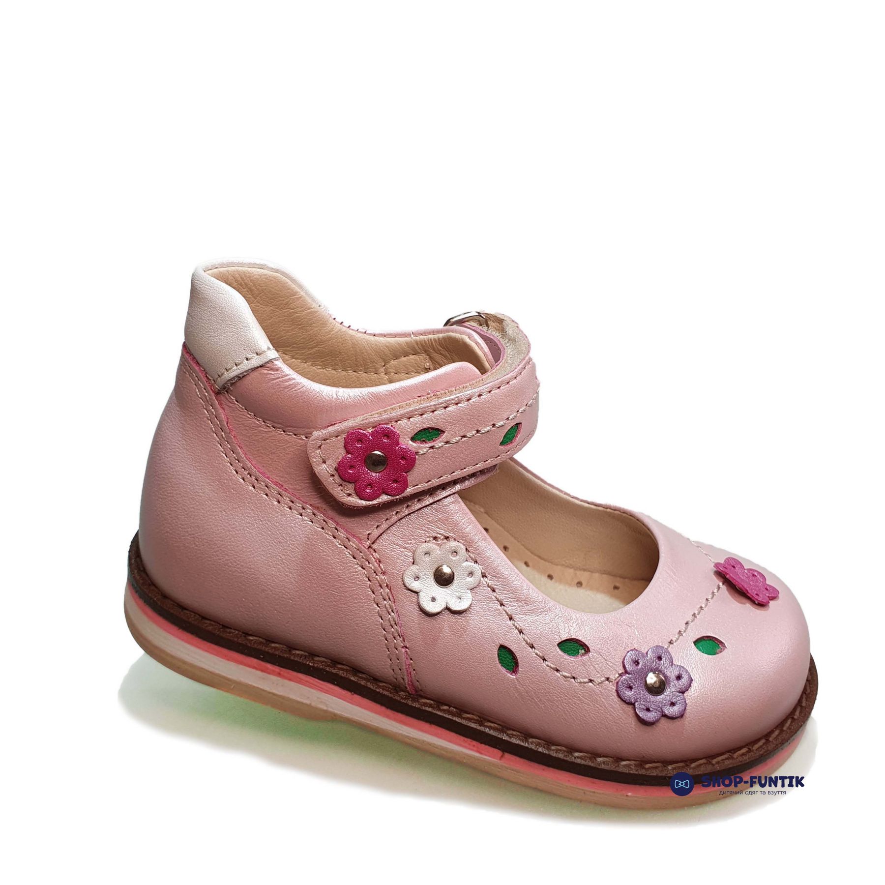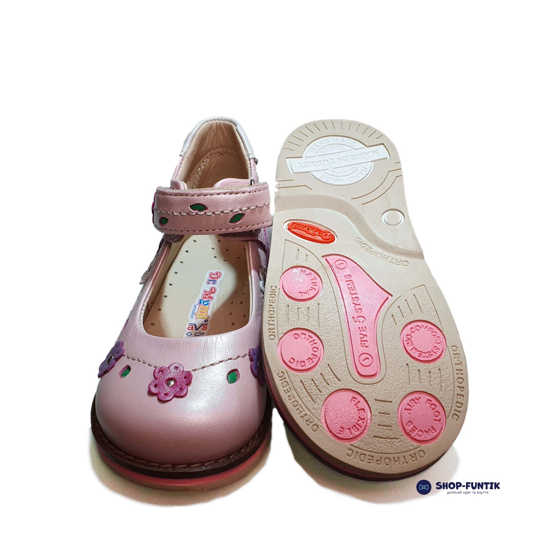 Розовые туфли Dr. Mymi с застежкой на липучке — это идеальный выбор для весенне-летнего сезона, который обязательно порадует вашу девочку! Эта модель сочетает в себе нежность, стиль и высокое качество, создавая идеальные условия для комфорта и правильного развития детской стопы. Верх туфель выполнен из мягкой натуральной кожи, которая обеспечивает прочность и долговечность. Украшение в виде цветочков белого и красного цвета добавляет обуви игривости и яркости, делая их любимым аксессуаром маленькой модницы.