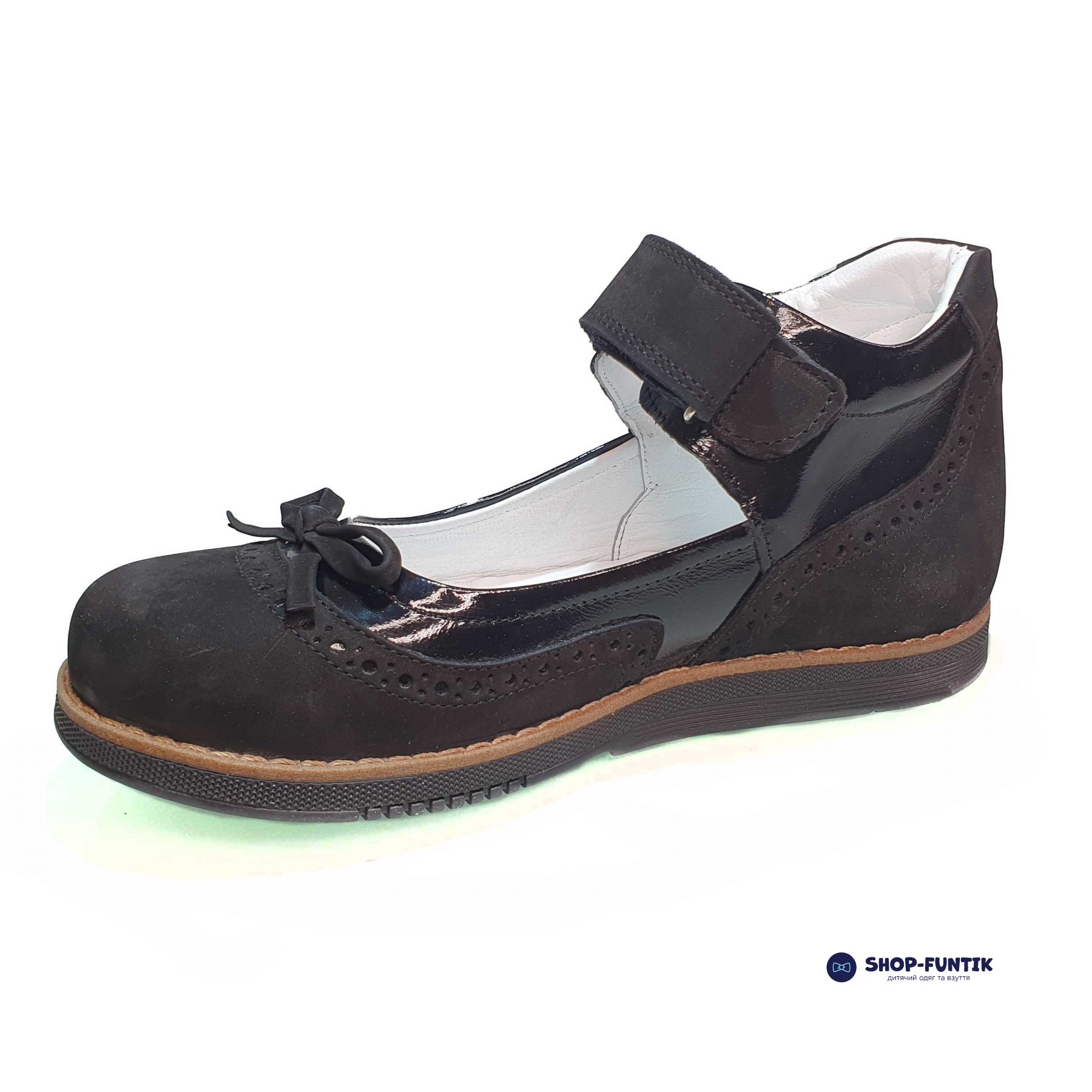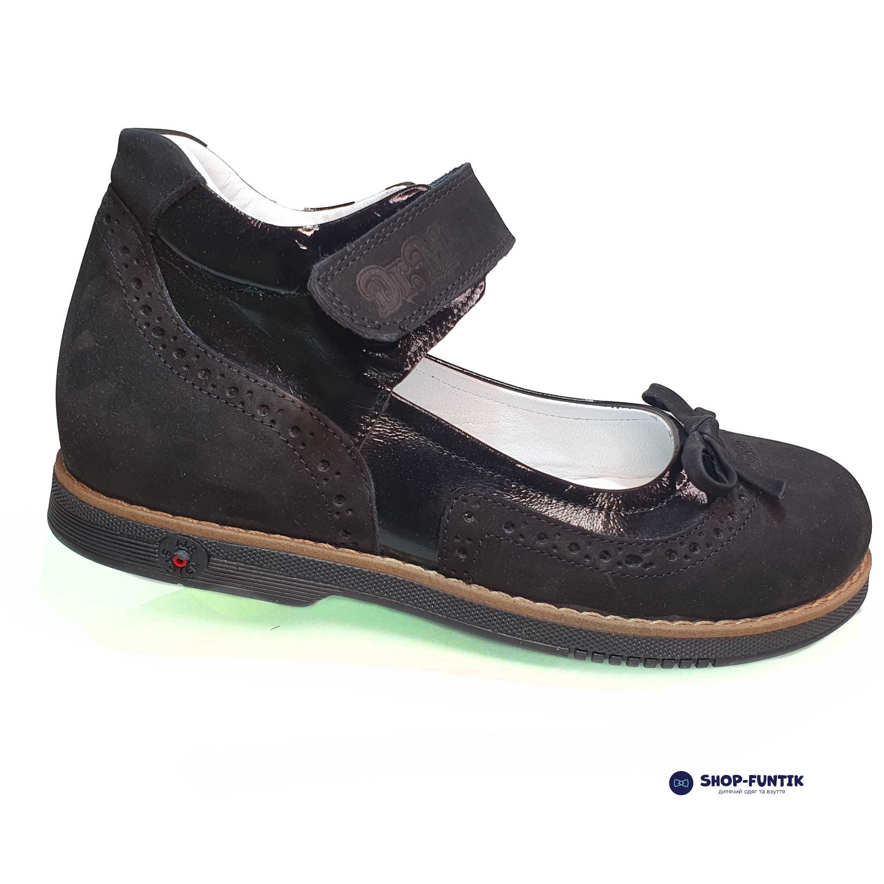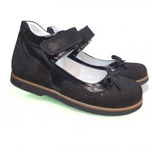 Туфли Dr.MYMI черного цвета с бантиком – идеальный выбор для вашей девочки на демисезонный период. Эта модель сочетает в себе элегантность, удобство и практичность, что делает её идеальной для школы и повседневного ношения. Верх туфель выполнен из комбинации натуральной кожи и нубука, что обеспечивает прочность и износостойкость, а также придает обуви стильный и современный вид. Маленький бантик из черной кожаной ленты на носочке добавляет туфлям изящности, делая их привлекательными и женственными, а прошитый рант цвета капучино придает завершённости и подчеркивает утонченность модели.