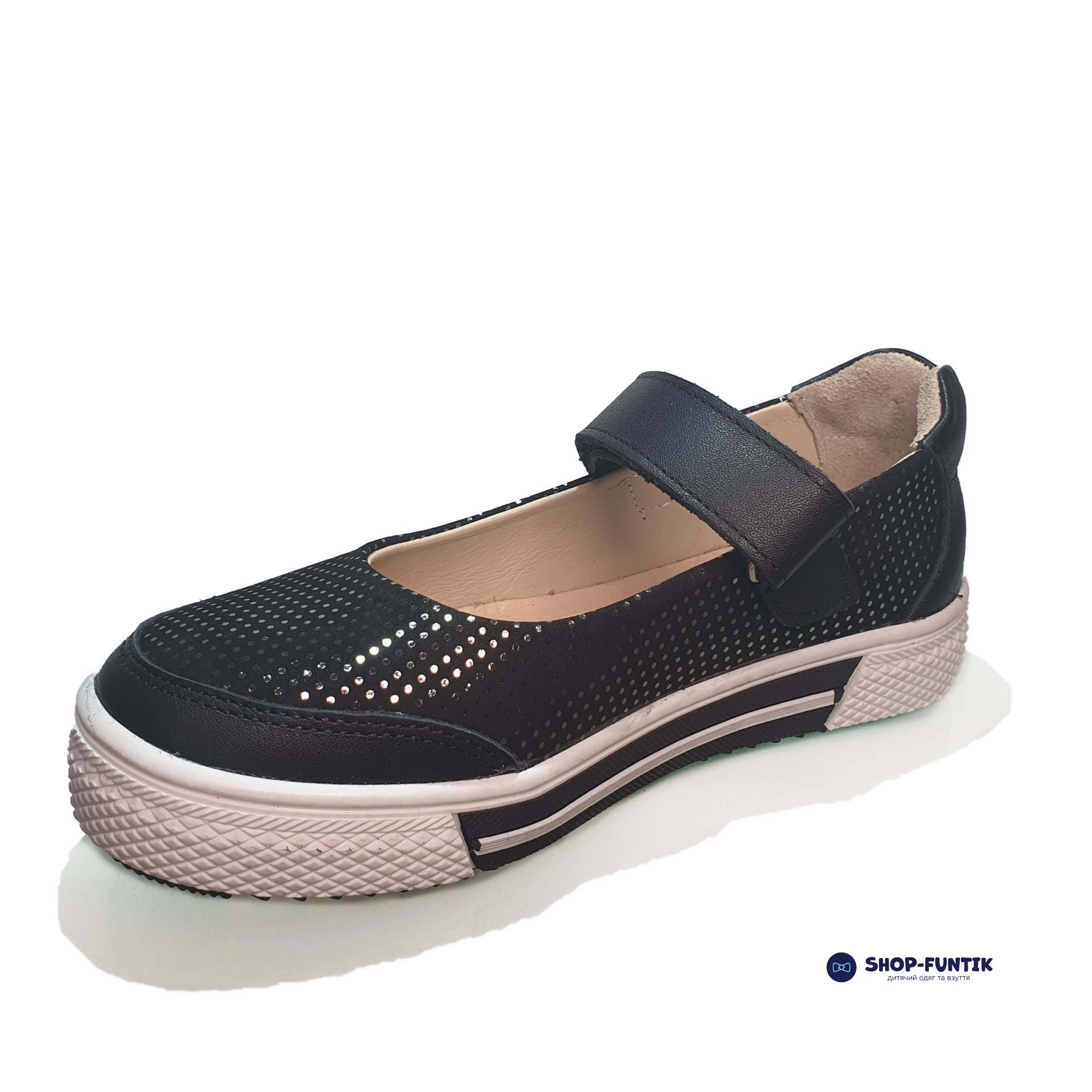 Твердая задняя часть прочно фиксирует стопу, предотвращая развитие плоскостопия. Застежка на липучке регулируется, плотно охватывая ножку и исключая вывихи. Стелька из натуральной кожи обеспечивает комфорт ногам в течение длительного времени.