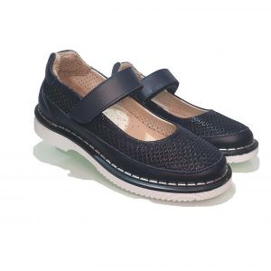 Стильные темно-синие туфли турецкого производителя Minicolor способны обеспечить комфорт и удобство ногам в течение длительного времени, поэтому подходят для ежедневного ношения на улице и в школе. Модель из натуральной кожи декорирована сквозной перфорацией и гладкими вставками на застежке и по периметру подошвы.