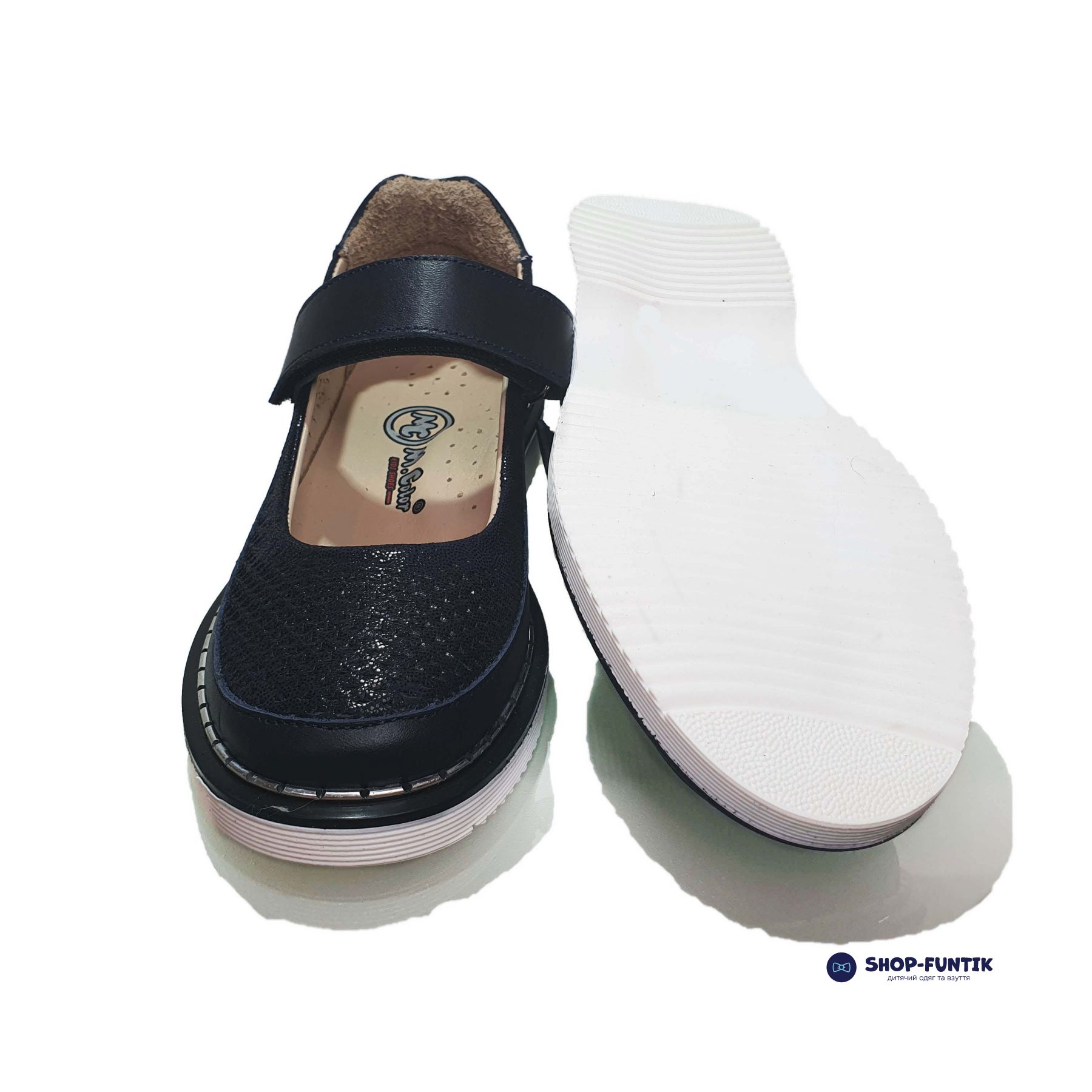Модная белая полиуретановая подошва с небольшим каблуком легкая. Задняя часть туфель твердая. Застежка-липучка регулирует захват ножки. Кожаная стелька имеет правильную анатомическую форму. Все это помогает предотвратить травматизм и развитие плоскостопия.