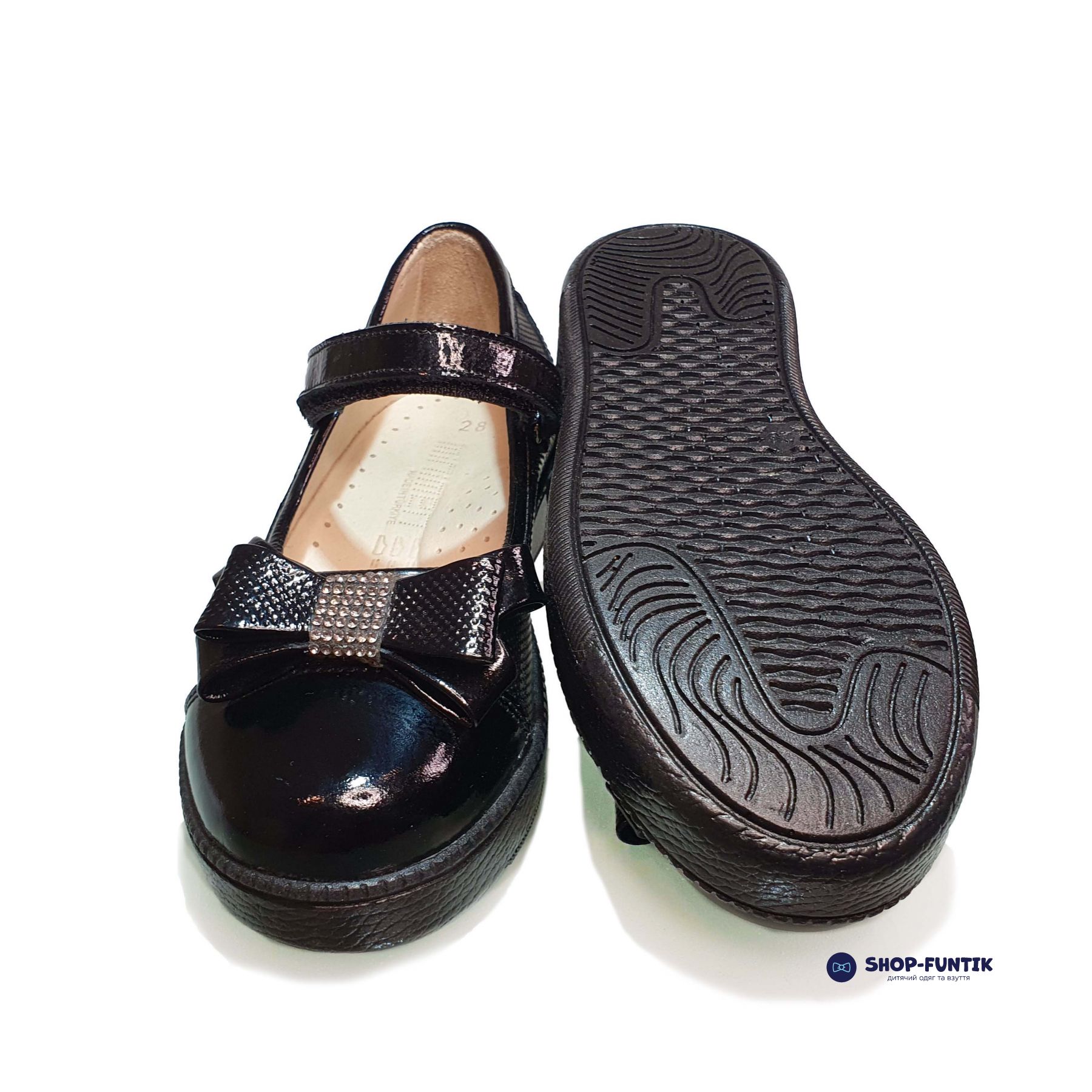 Подошва сделана из полиуретана. Подошва туфель на девочку достаточно высокая, сделанная