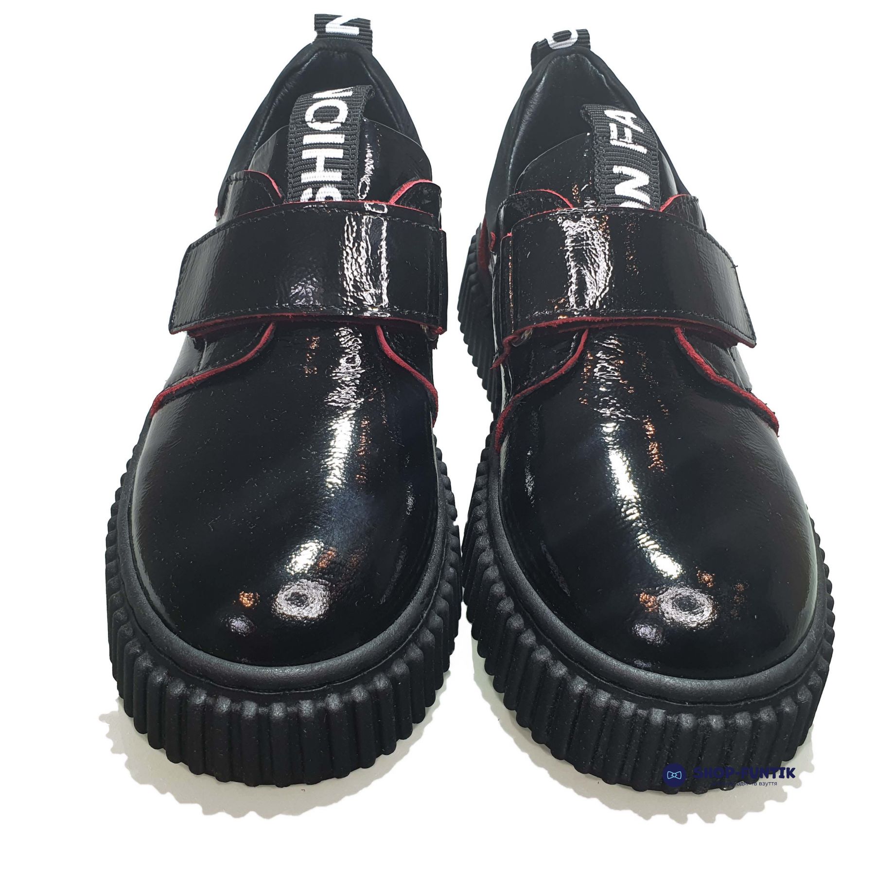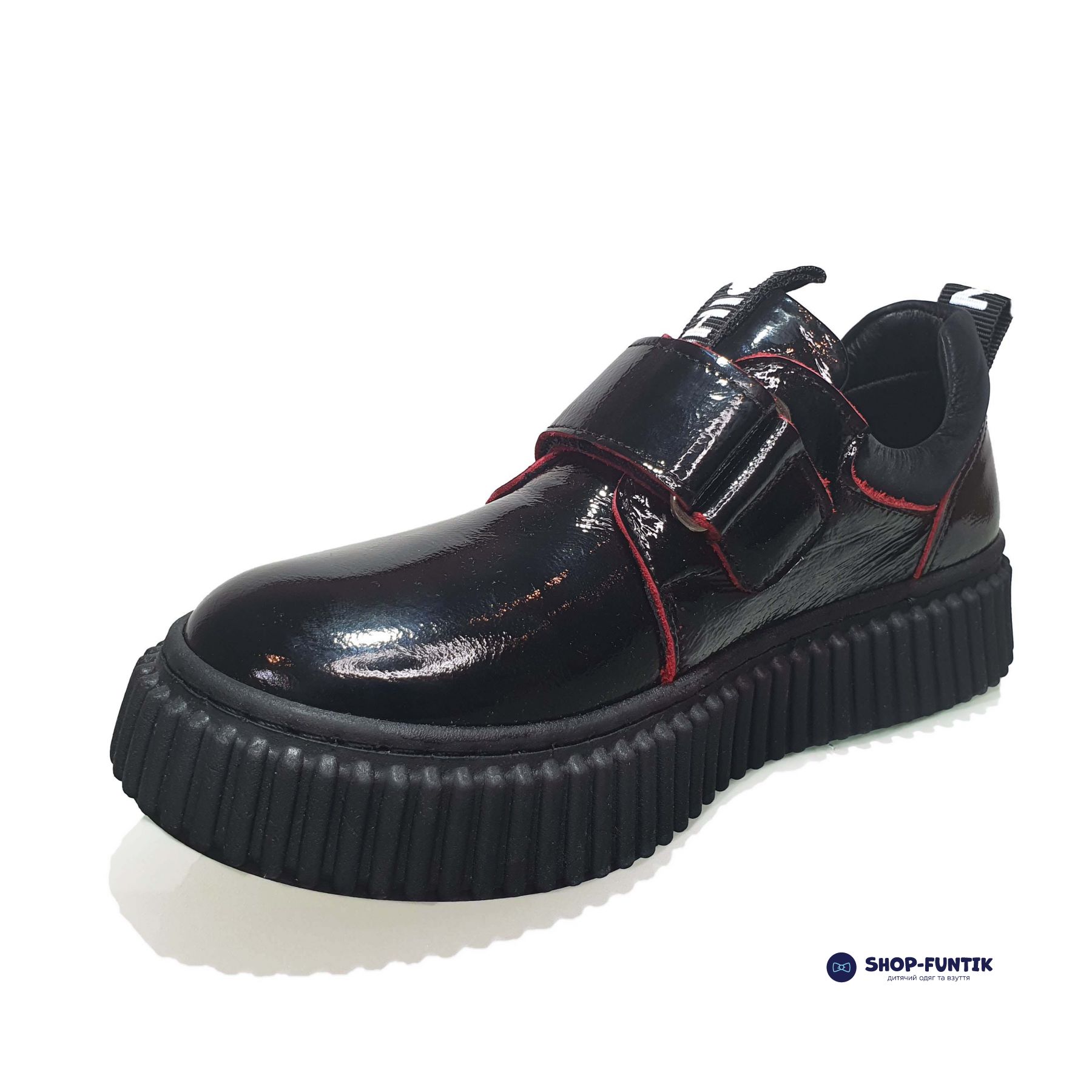 Закрытые туфли спортивного стиля для девочек турецкого бренда Tomini выполнены из лаковой кожи черного цвета. Их можно обувать на прогулку, в школу, на праздник. Лаконичный дизайн позволяет носить их с юбками, платьями, брюками, спортивными штанами. Подошву из поливинилхлорида отличает прочность и гибкость, которая не сковывает активных движений.