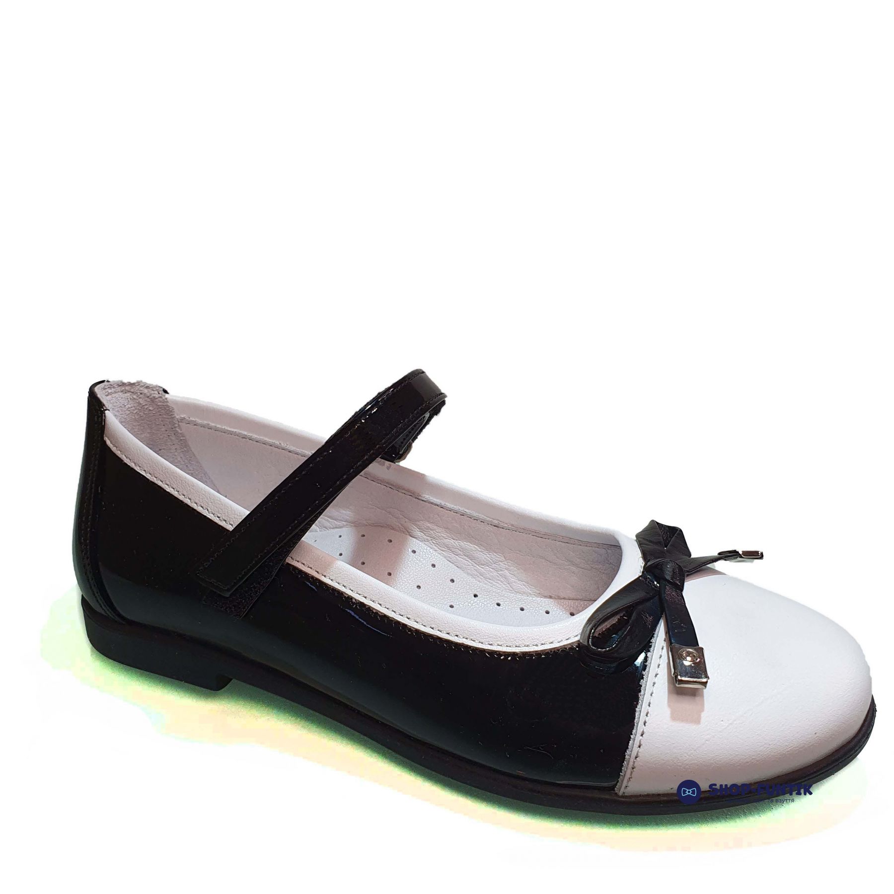 Туфли Tunel черные лаковые с белым носочком 1617