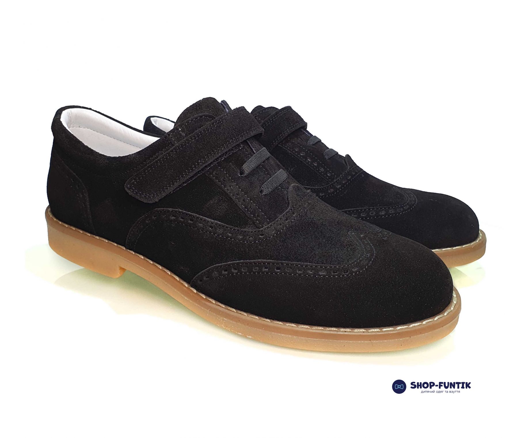 Стильные туфли для мальчиков турецкого производителя. В черном цвете с контрастной