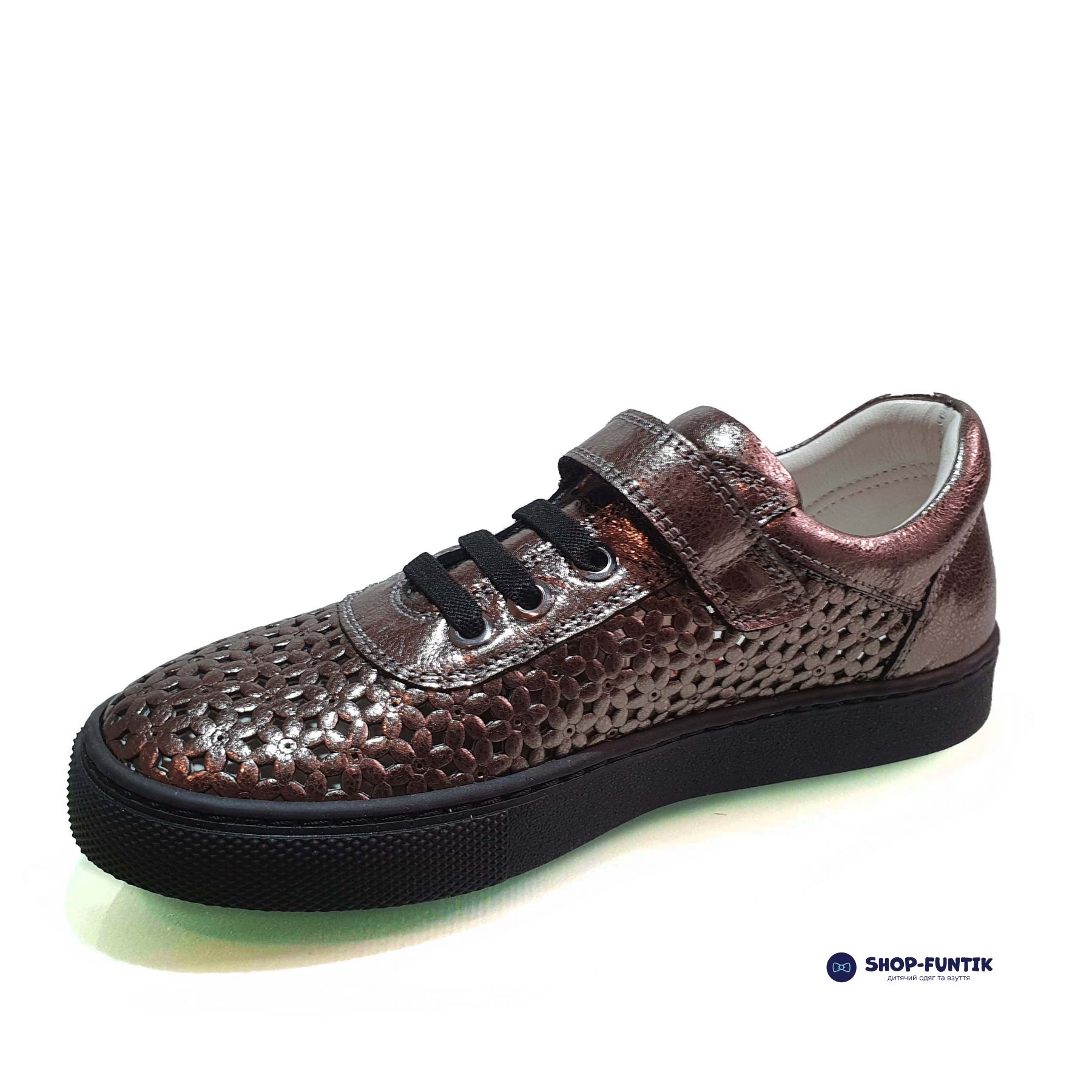 Особое внимание уделено анатомической стельке, которая поддерживает правильное положение стопы и способствует комфорту при длительном ношении. Туфли оснащены удобной застежкой липучкой, что позволяет легко и быстро надевать и снимать обувь. Декоративная шнуровка добавляет изысканный акцент, подчеркивая утонченность модели.
