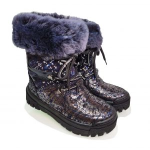 Угги Panda синие с декоративной шнуровкой наверняка понравятся девочкам благодаря мягкой меховой опушке по краю ботинок. Модель выполнена из мягкой блестящей кожи с принтом и украшена оригинальной шнуровкой с логотипом. Подкладка сделана из натурального меха, который сохранит ноги теплыми даже в сильный морозный день.