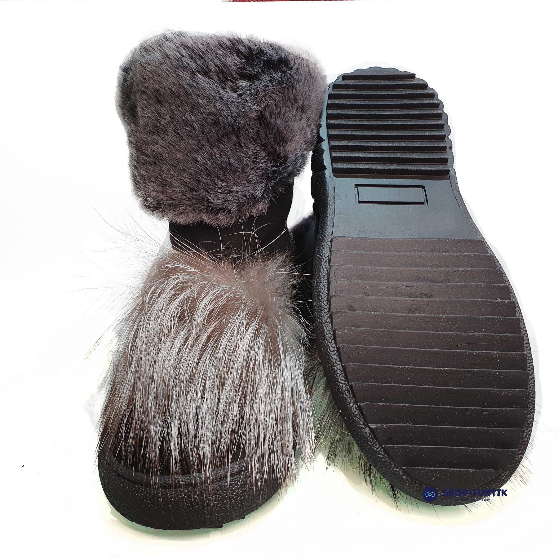 Угги Tunel черные украшены натуральным мехом 1229