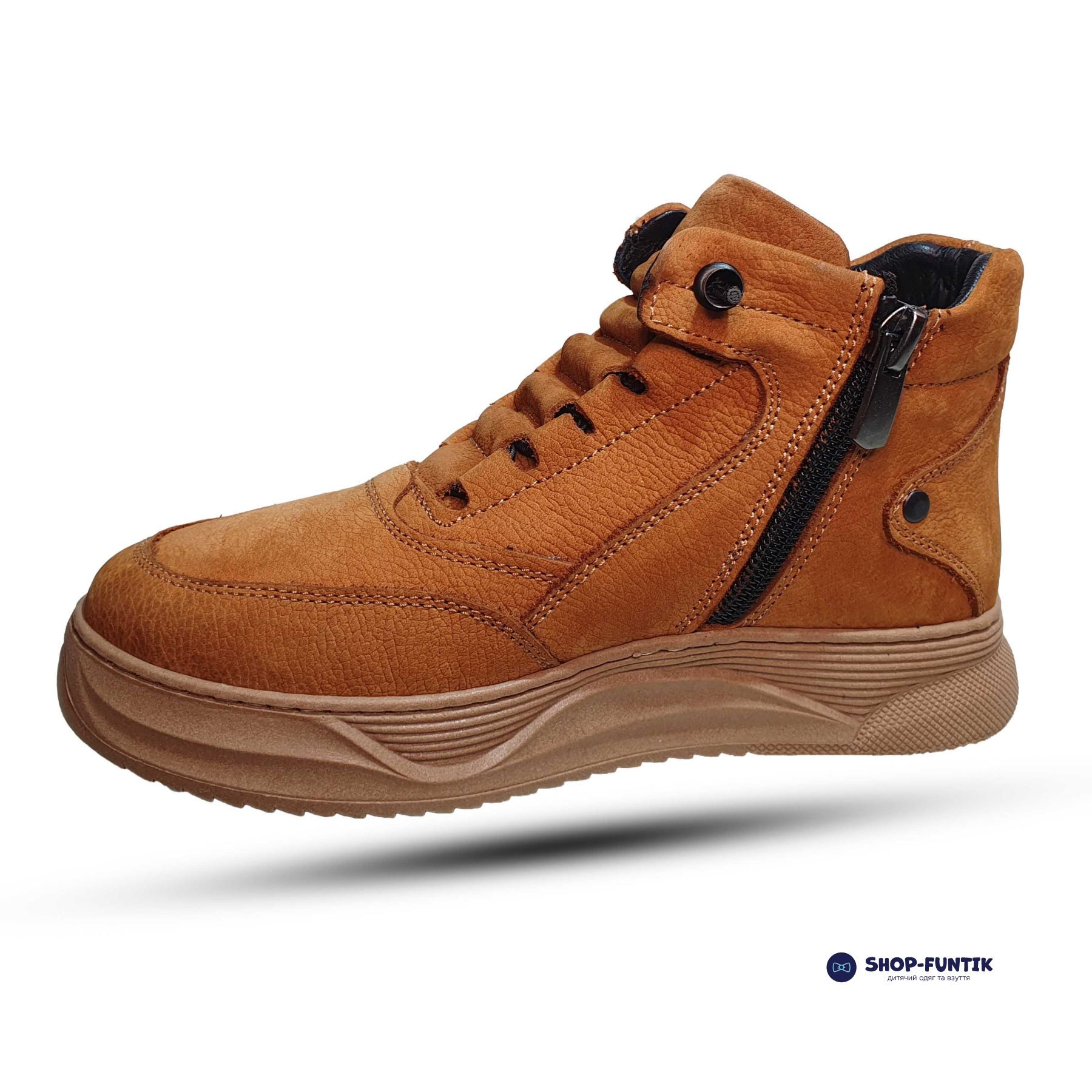 Tunel 4425 – демісезонні черевики для хлопчиків та дівчаток, виконані у стильному рудому кольорі, поєднують у собі якість та зручність. Верхня частина виготовлена з нубука - м'якого і приємного на дотик матеріалу, який має гарну зносостійкість і легкий догляд. Цей матеріал також забезпечує черевикам водовідштовхувальні властивості, що робить їх ідеальними для осінньо-весняного періоду.